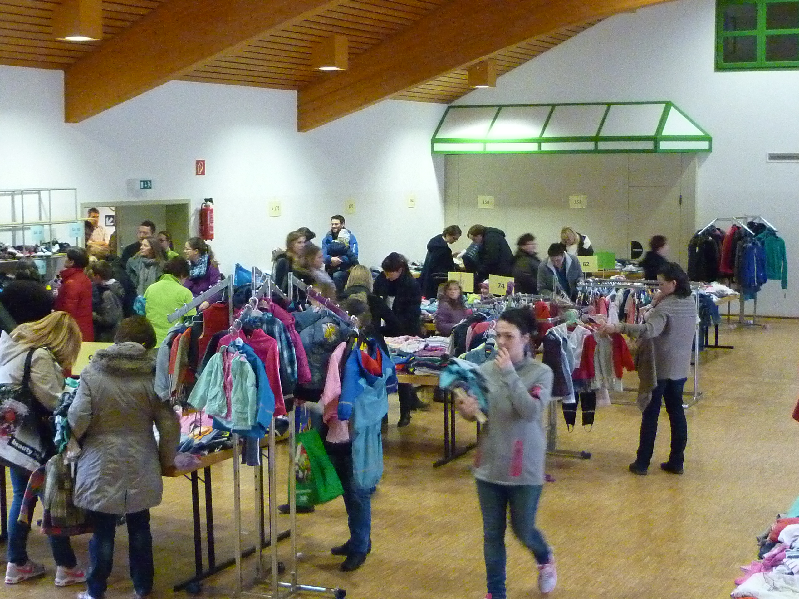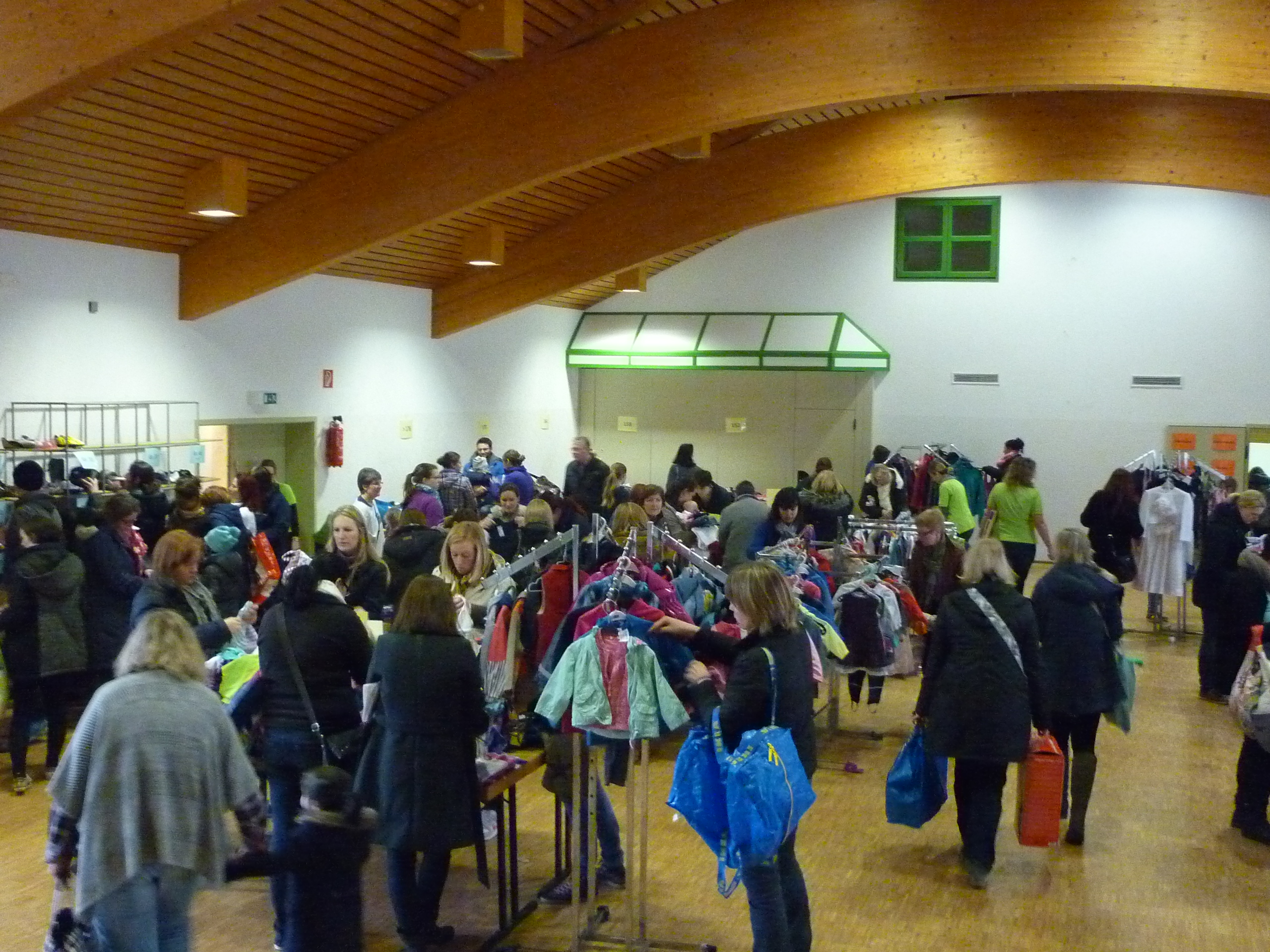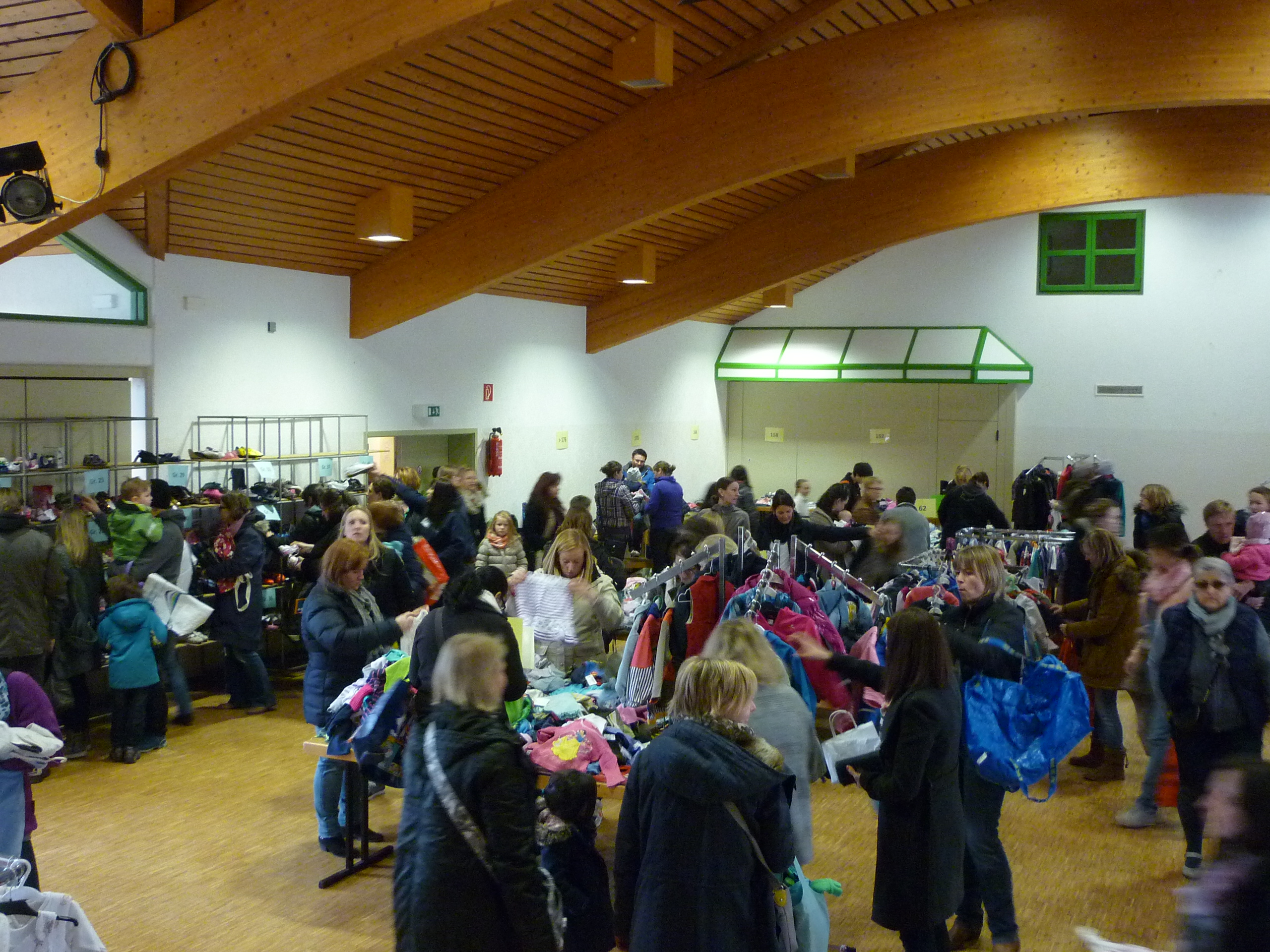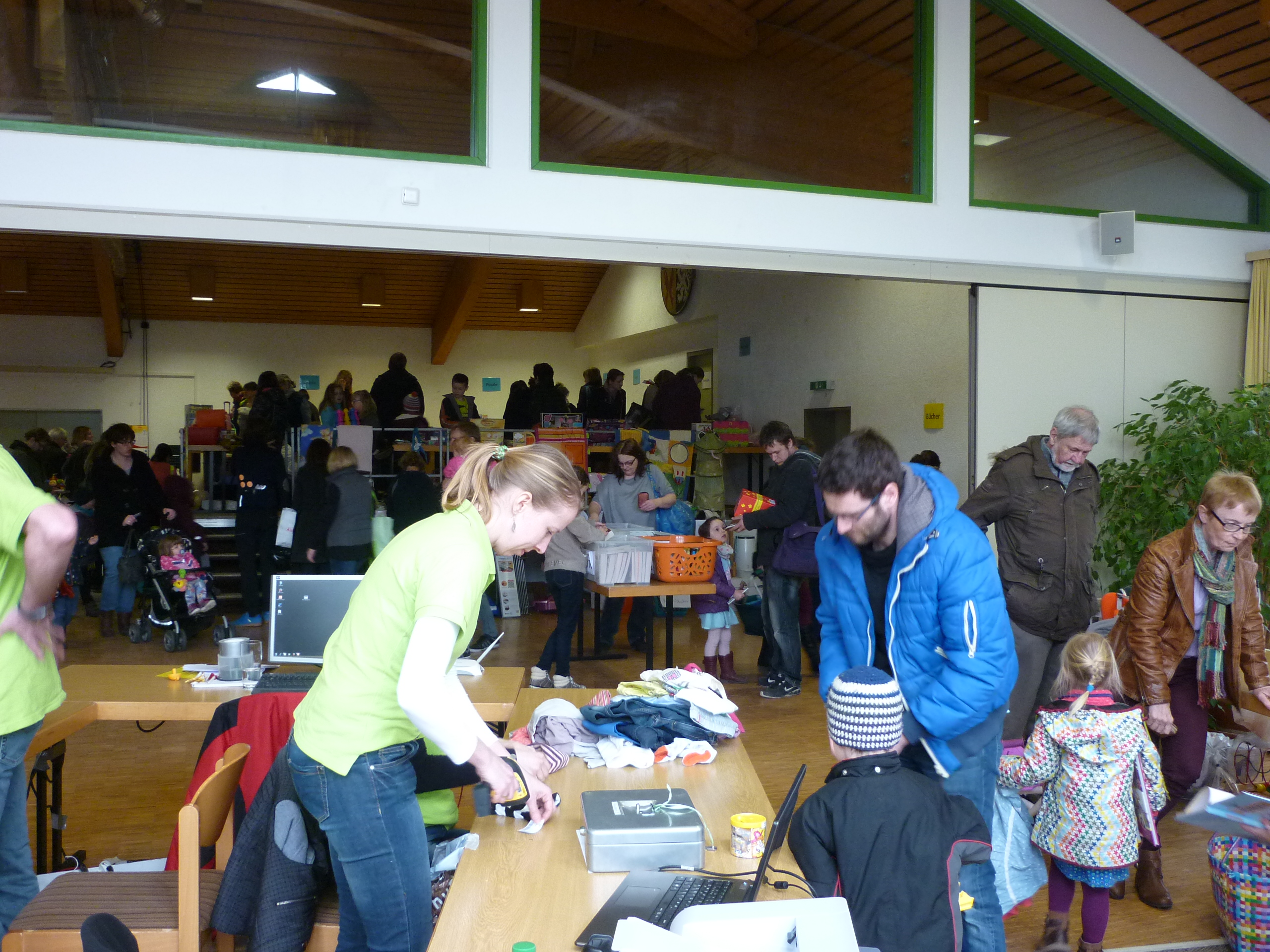 Andrang am Schuhregal |  Entspannte Situation an der Kasse |  während noch in der Halle ausgesucht wird. |