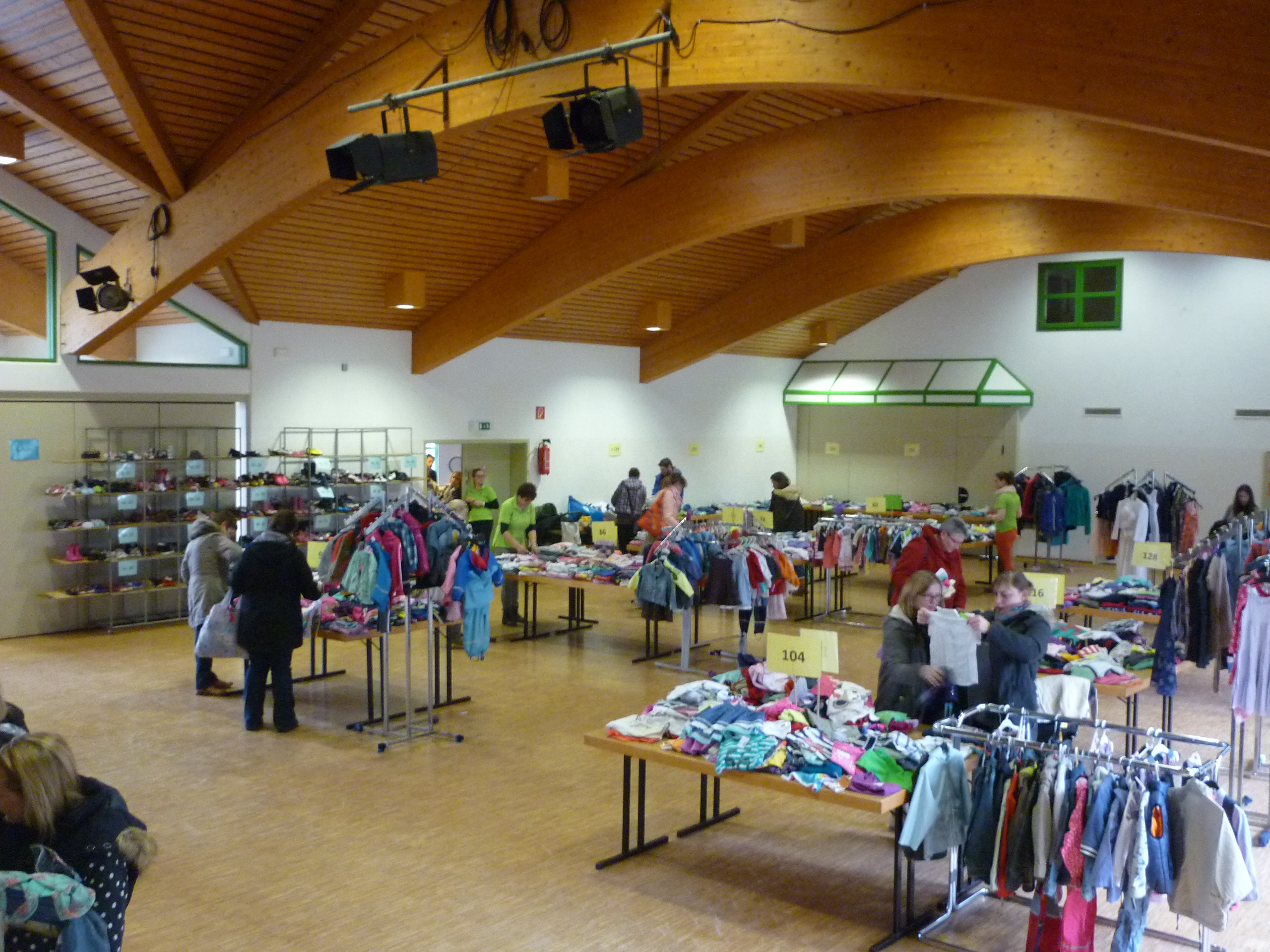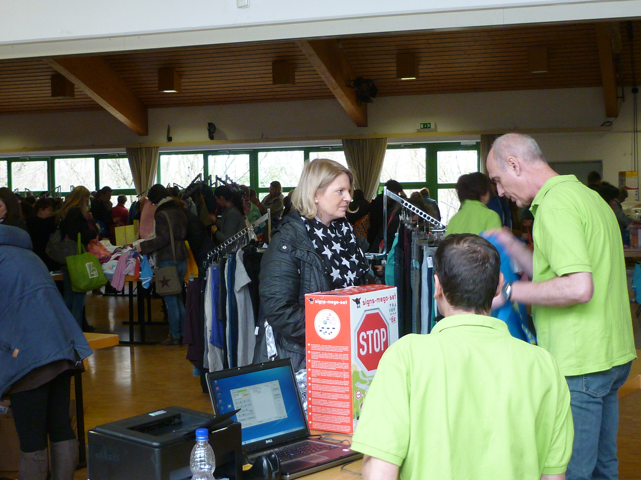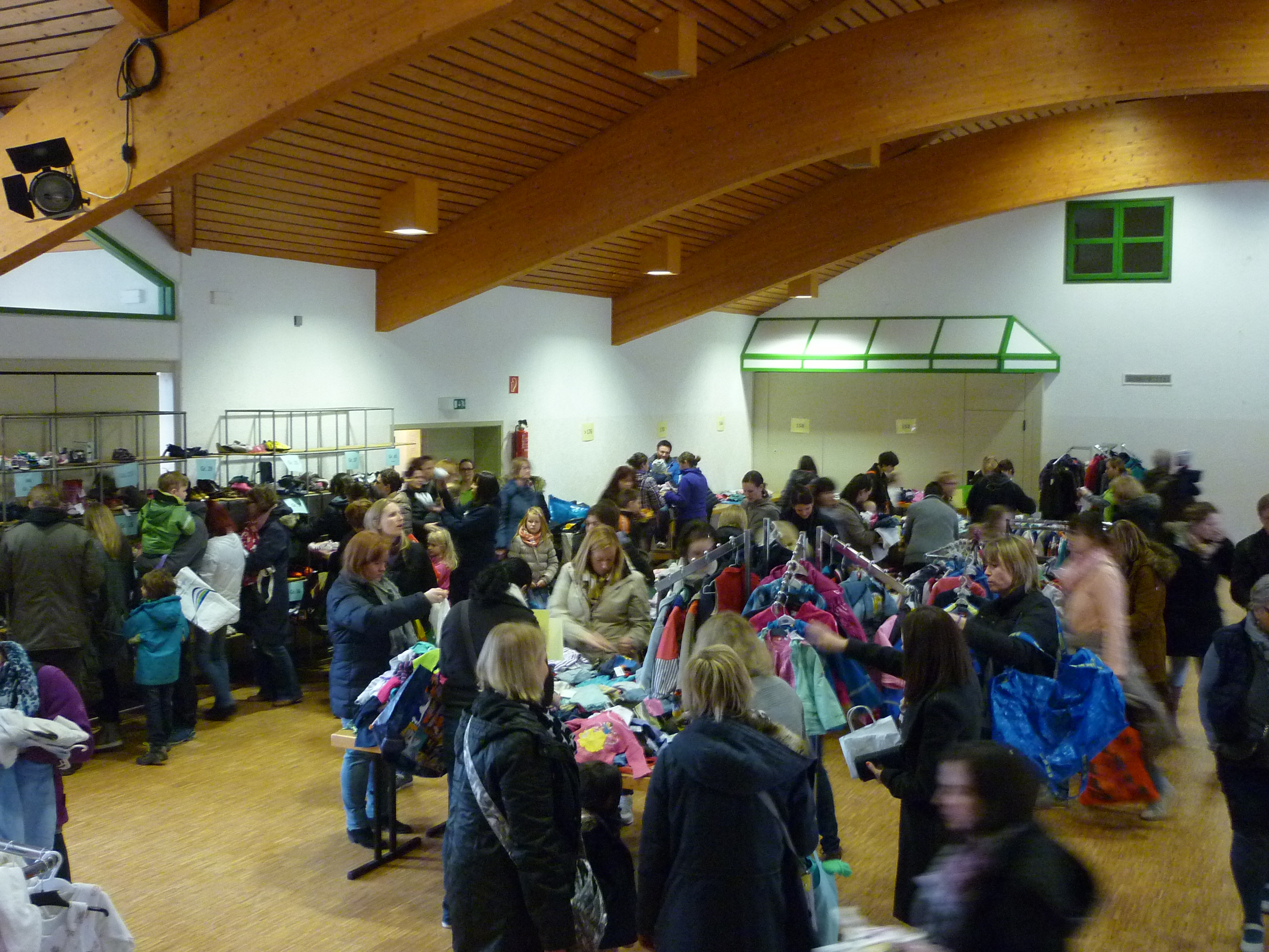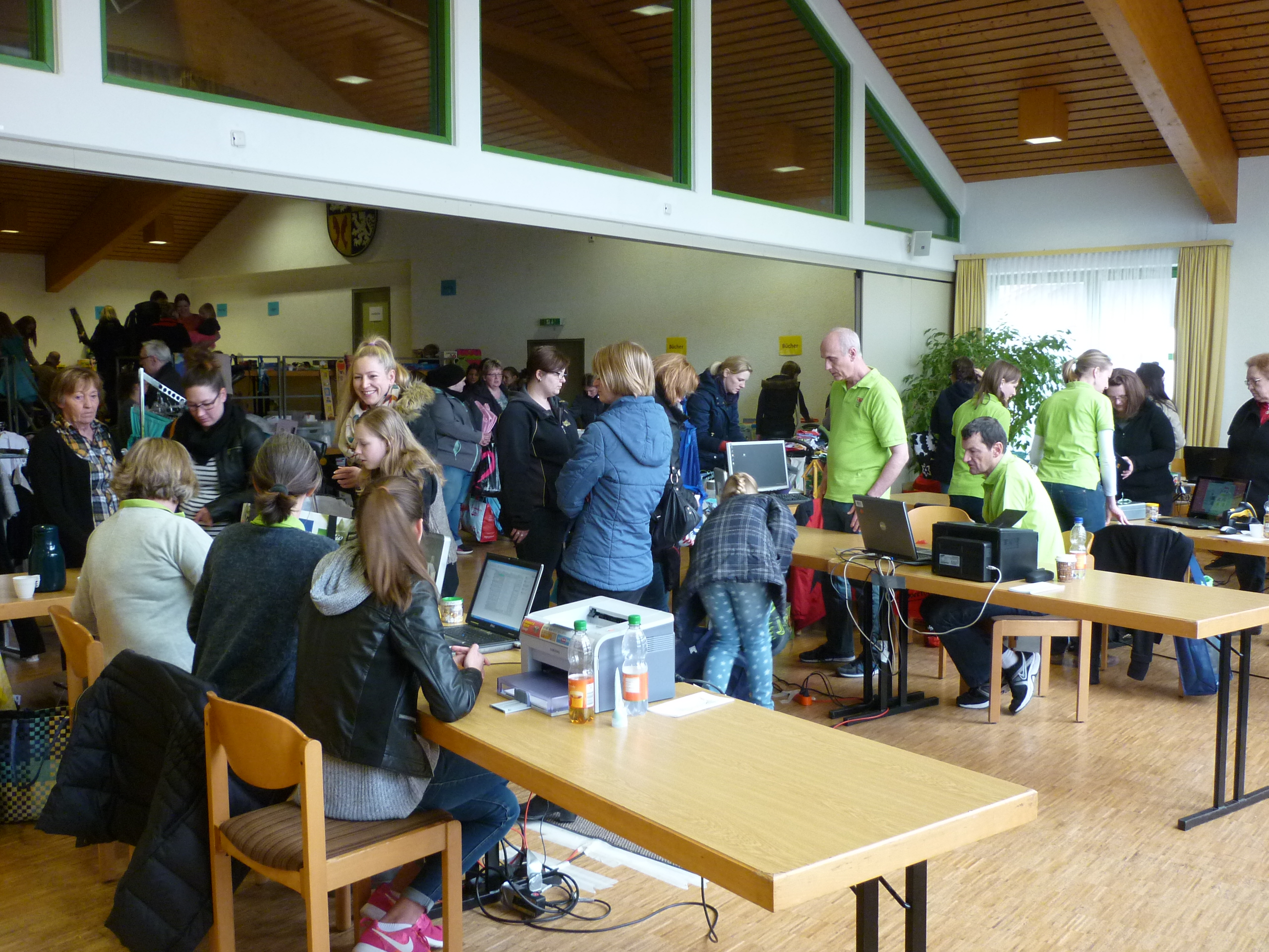 Andrang am Schuhregal |  Entspannte Situation an der Kasse |  während noch in der Halle ausgesucht wird. |