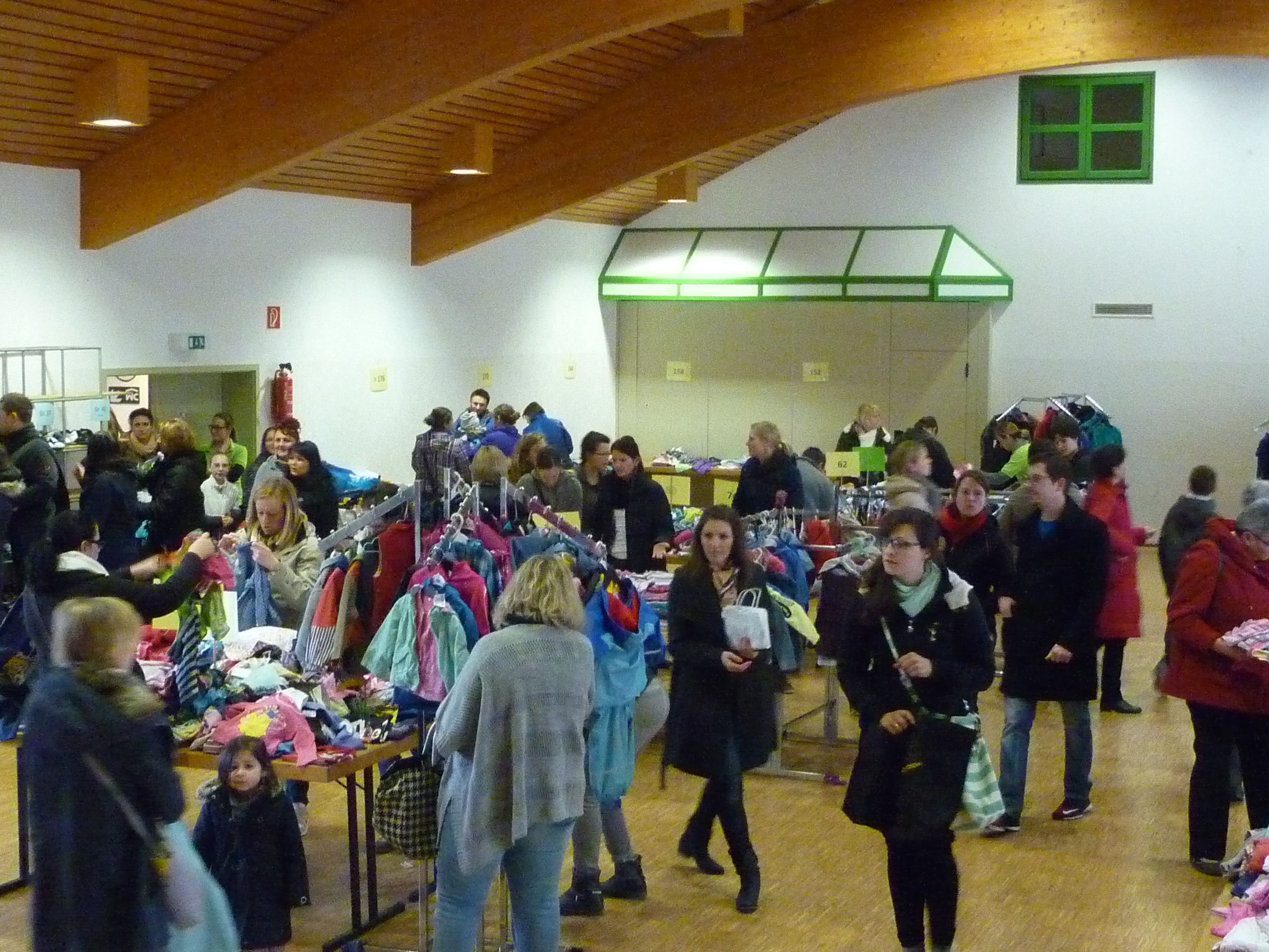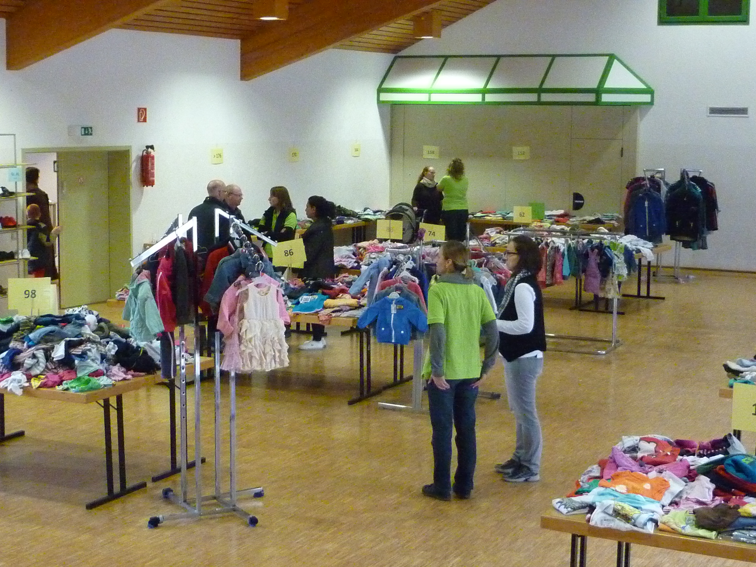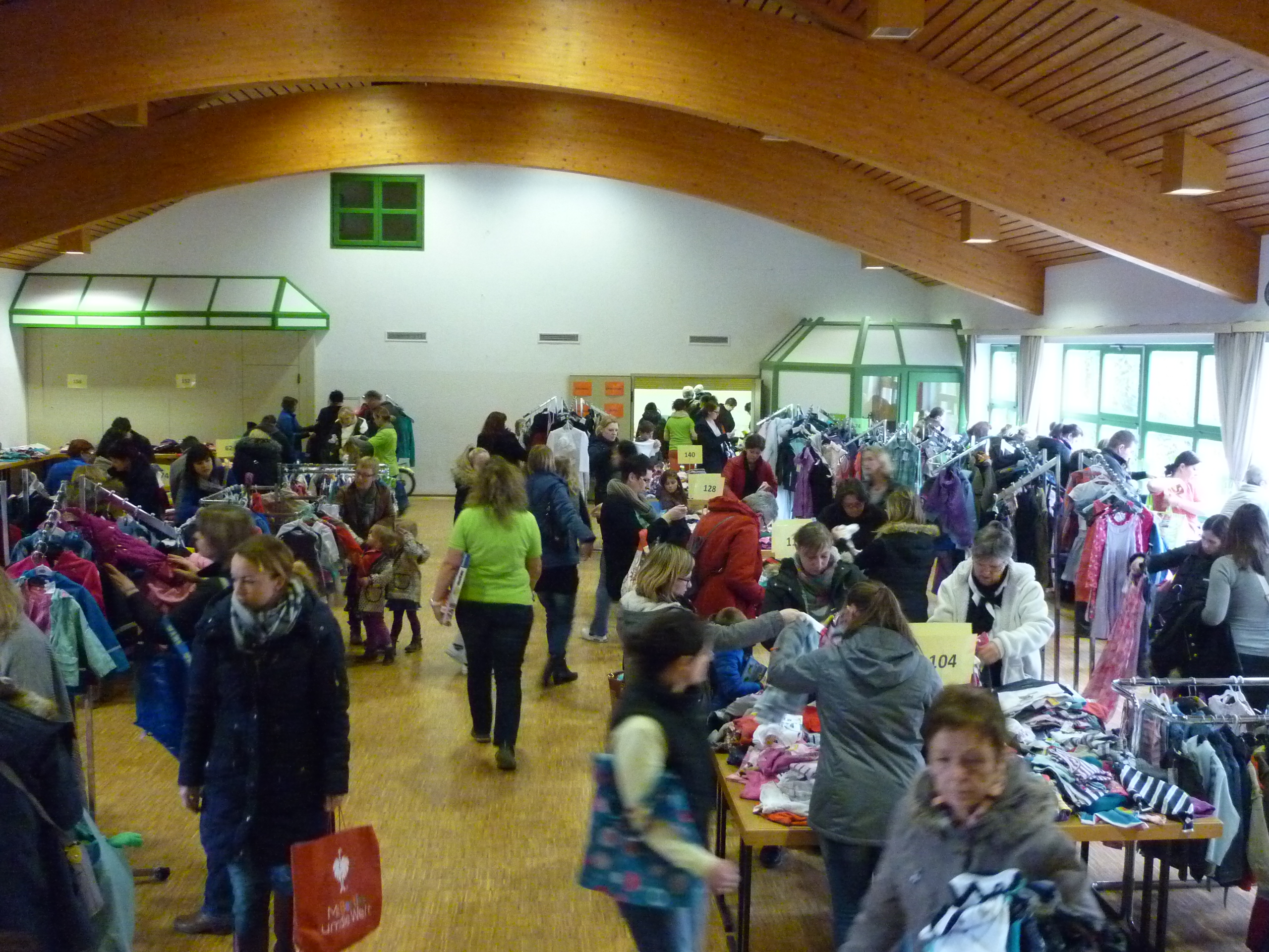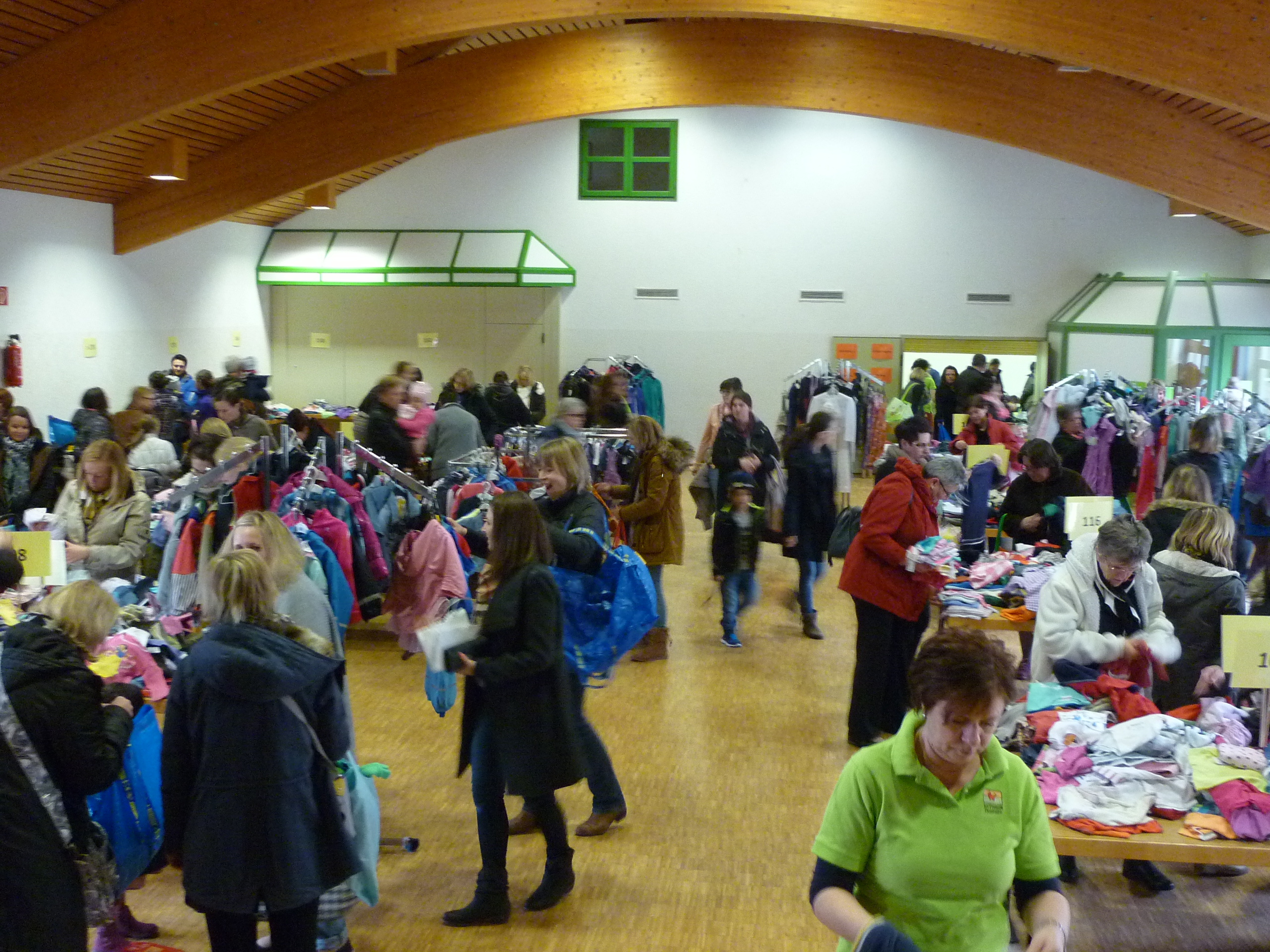 Andrang am Schuhregal |  Entspannte Situation an der Kasse |  während noch in der Halle ausgesucht wird. |
