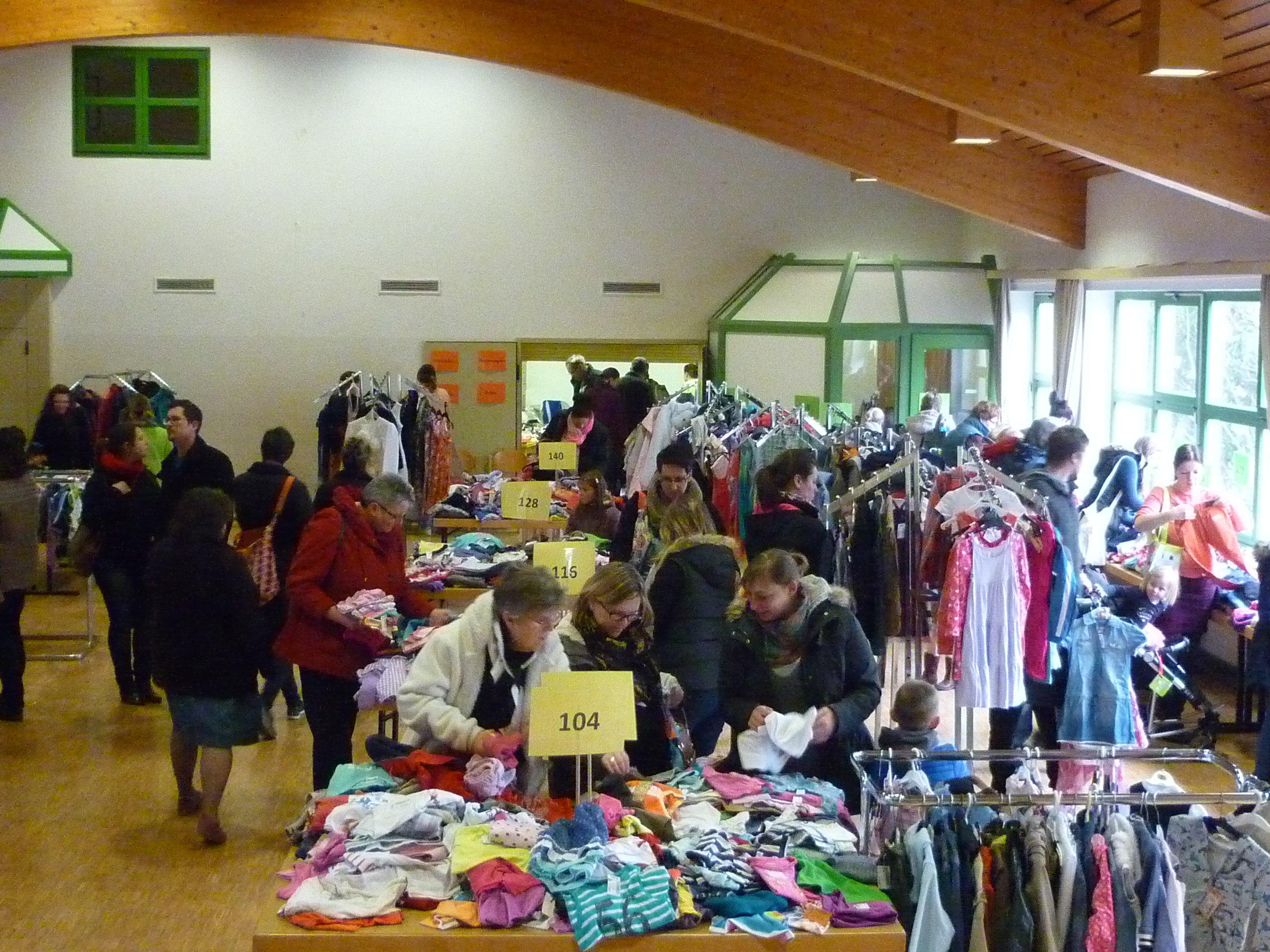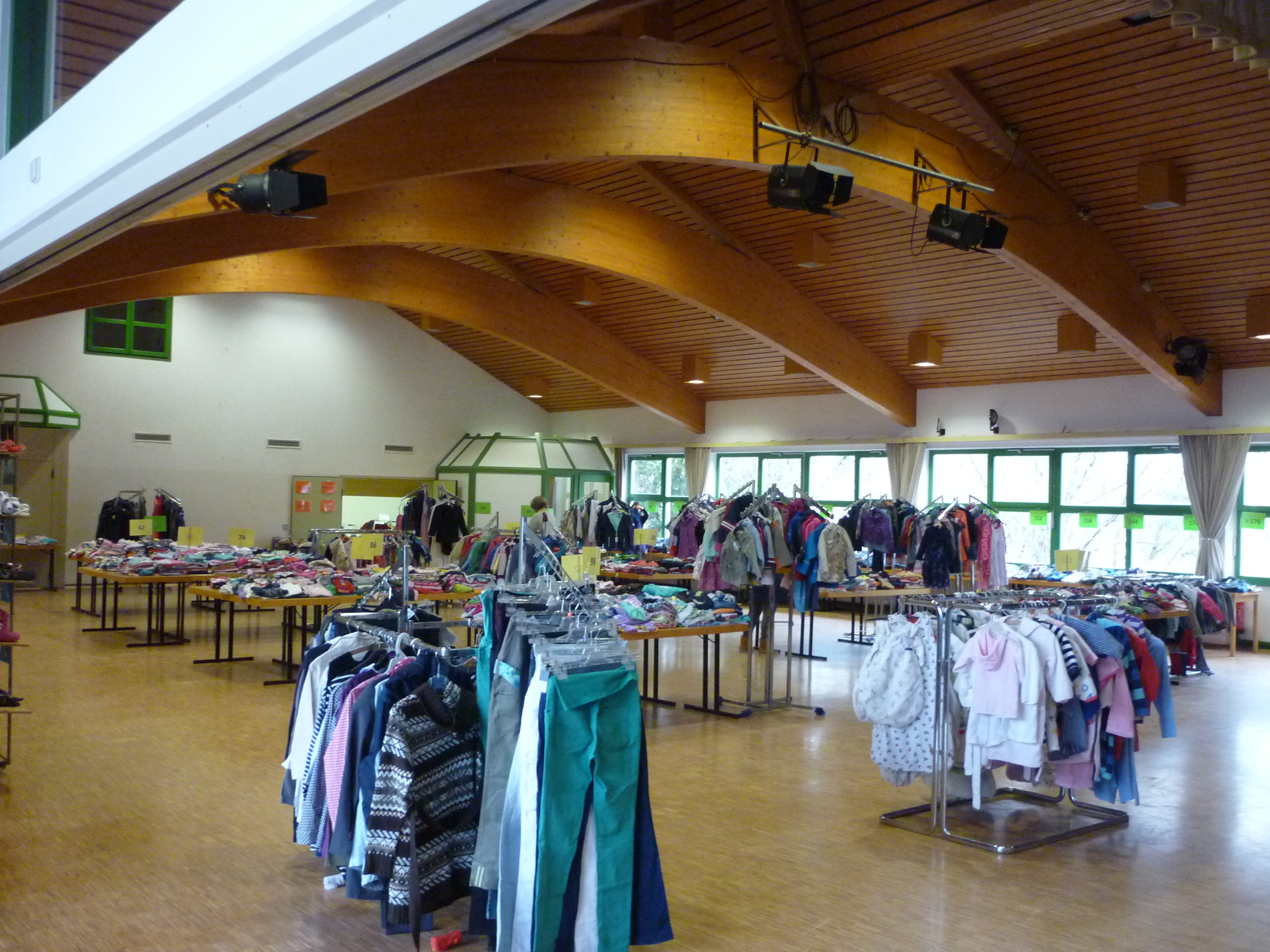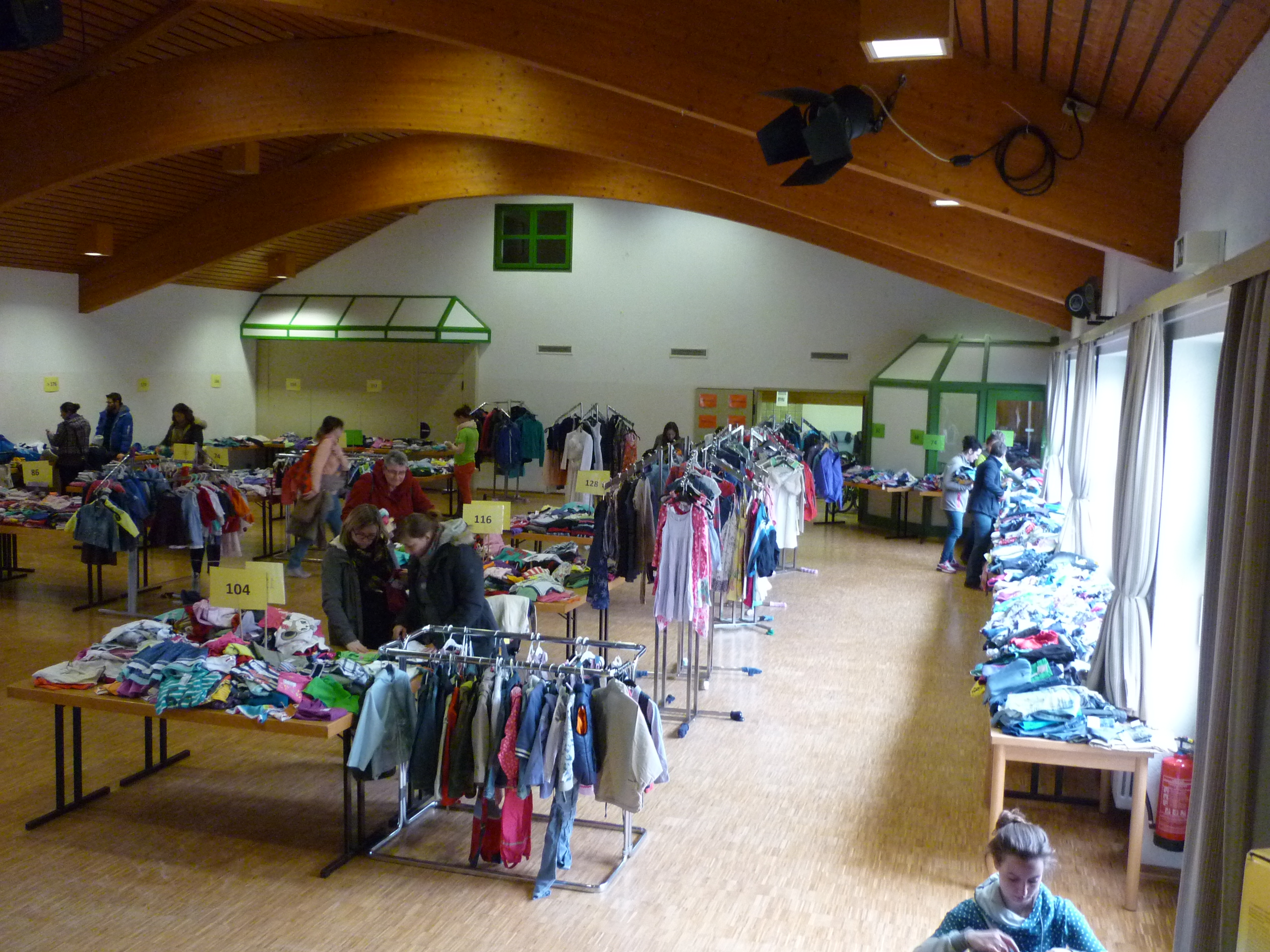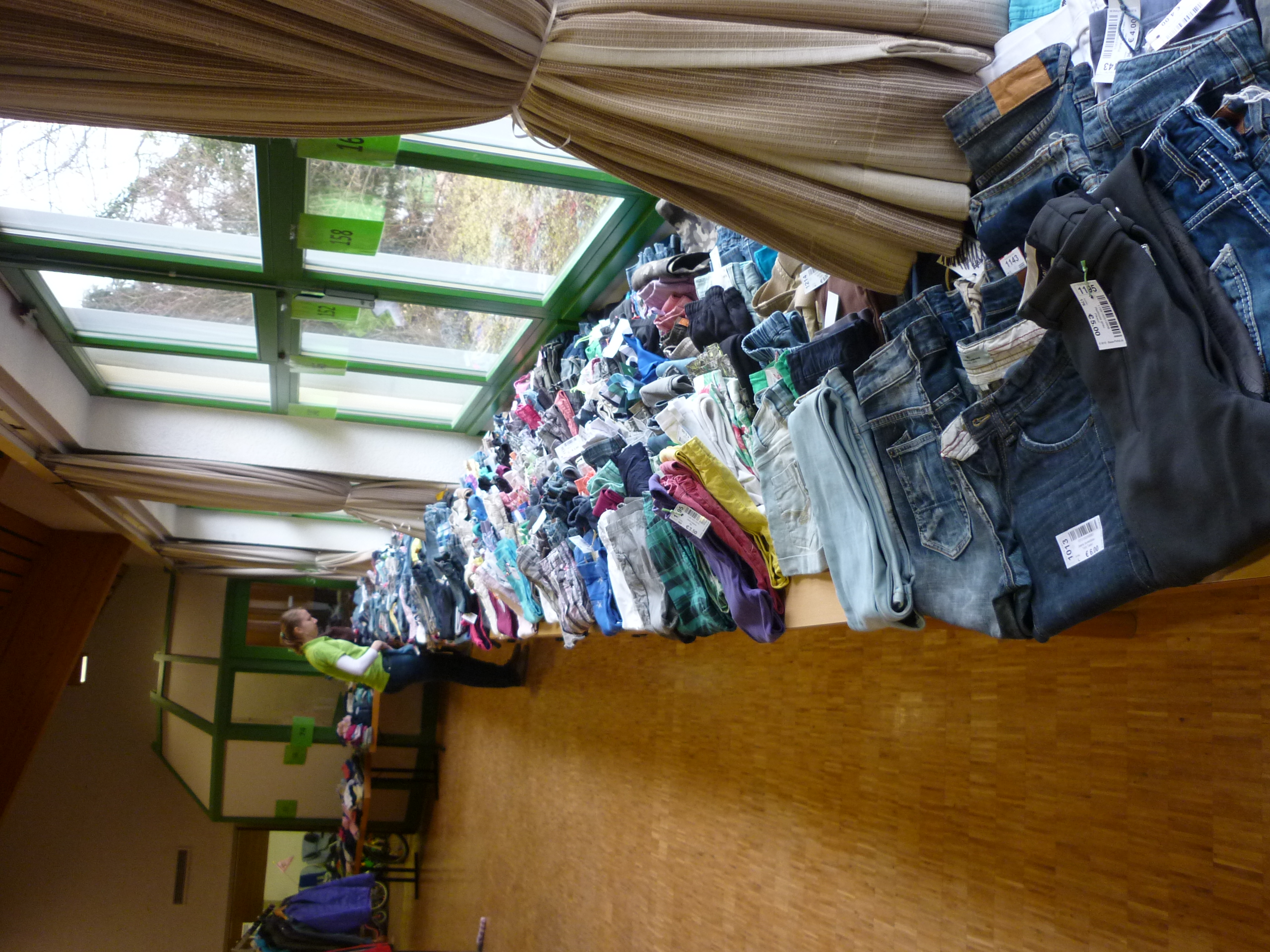 Andrang am Schuhregal |  Entspannte Situation an der Kasse |  während noch in der Halle ausgesucht wird. |