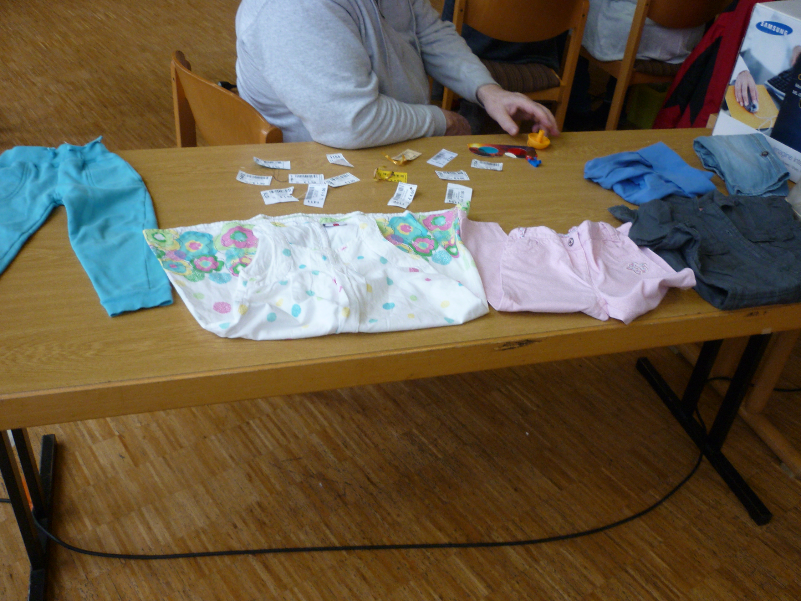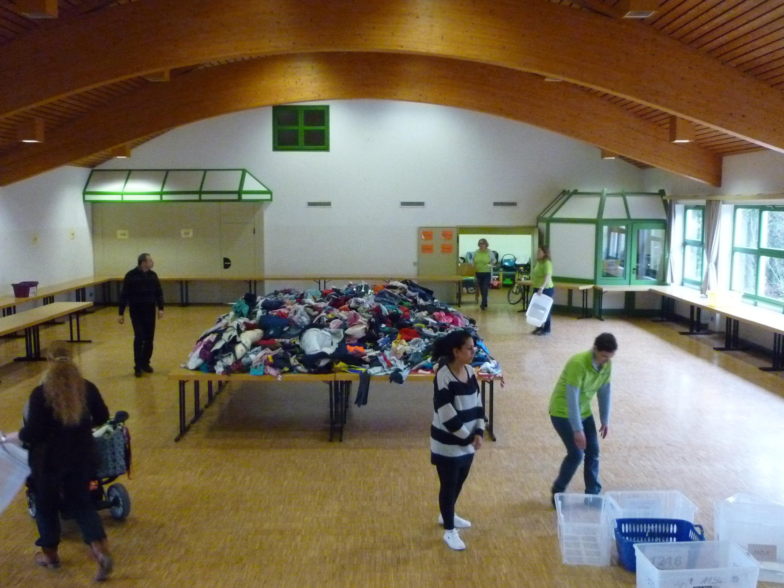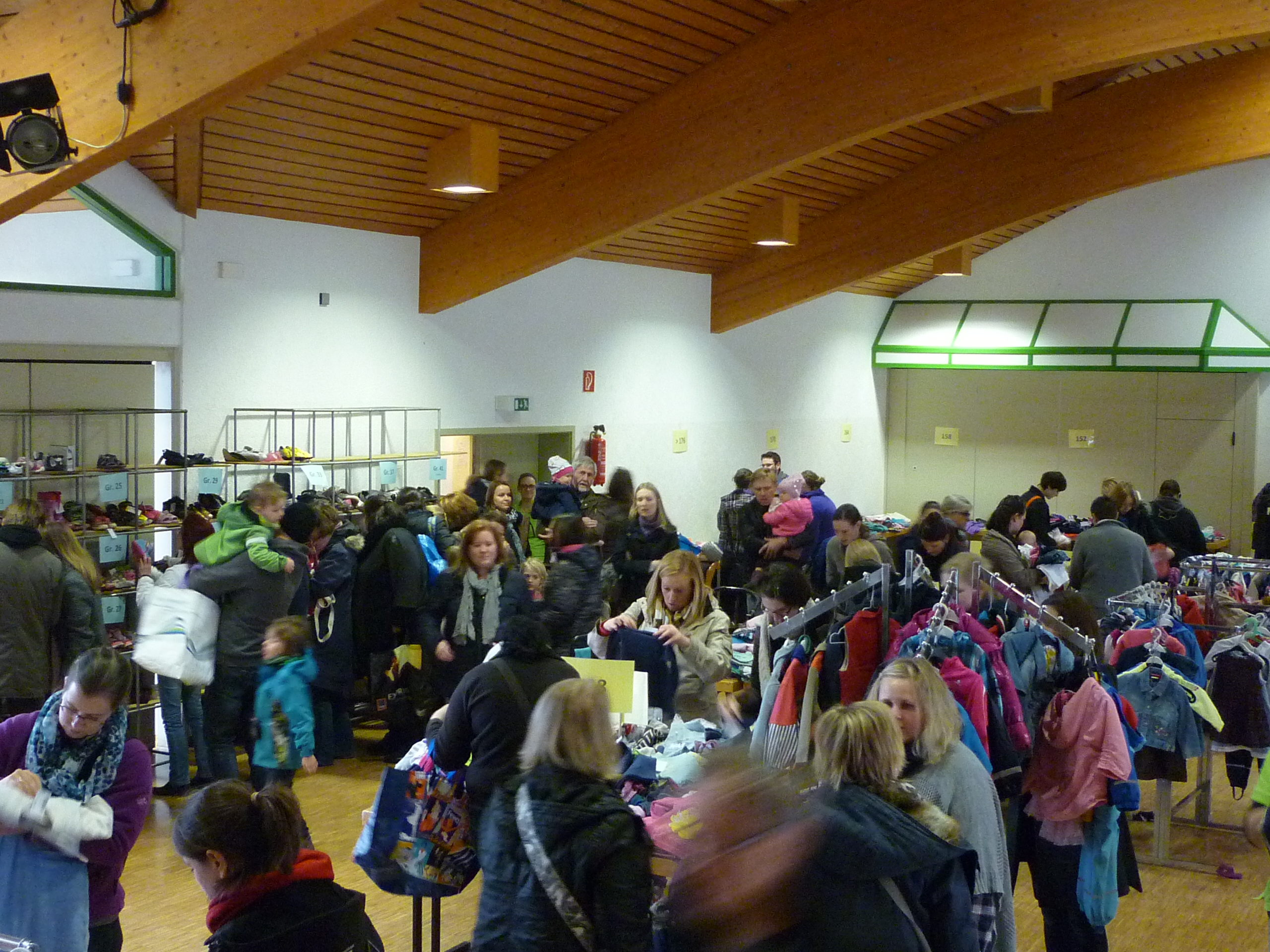 die ersten Interessenten für Schuhe |  der Raum füllt sich |  und es wird gesucht und geprüft |
